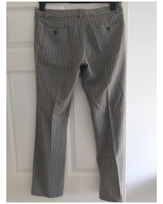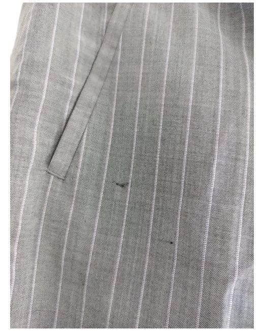 Lightweight blend of 85% wool, 15% Mohair. Grey trousers with subtle pink and white stripes. EU size 42 so will fit roughly UK size 14.
