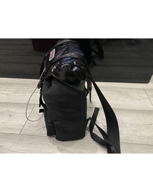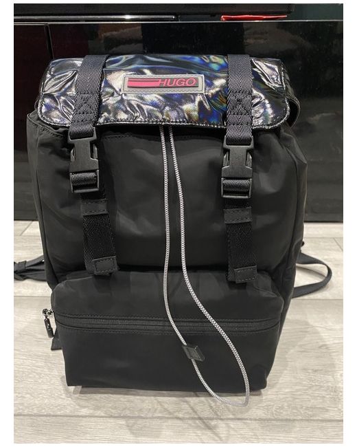 Closed with drawstring and snap buckles Length-adjustable shoulder straps Outer compartment on front One main compartment inside Inner compartment Reinforced bag bottom Padded back Glossy look on flap Logo emblem on flap MATERIALS & CARE Nylon, Textile, synthetics MEASUREMENTS 35 x 25 x 16 cm (H x W x D) Brand new with tags