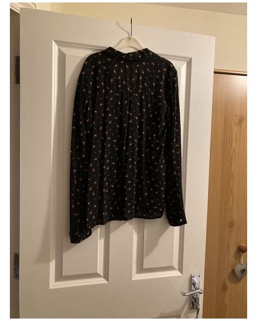 This is a black Pull & Bear blouse in size S featuring a floral pattern. The multicoloured floral print gives the blouse a stylish and feminine look. This versatile top can be dressed up or down for various occasions, making it a great addition to any wardrobe.
