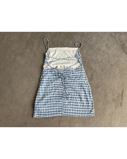 Women's Blue Pull And Bear White Checked Gingham Mini Dress M