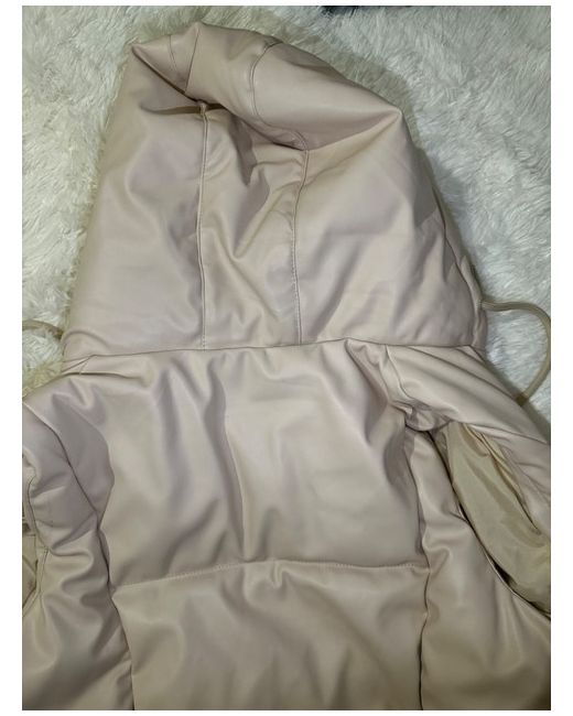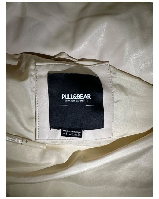 This Pull&Bear cream PVC puffer gilet is a stylish jacket designed for women in size small. The outer shell material is PVC, giving it a unique look and texture. Perfect for layering over tops or sweaters, this gilet is a fashionable choice for adding warmth and style to your outfit. The cream colour adds a touch of versatility, making it easy to pair with different pieces in your wardrobe.