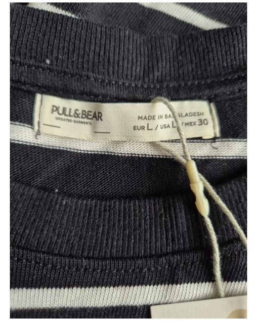 The Pull&Bear black and white striped long-sleeved top is a stylish and versatile addition to any woman's wardrobe. Made for a casual occasion, this round neck top features a regular fit in size L. The classic black and white stripes add a touch of sophistication to the top, making it suitable for everyday wear. With its long sleeves and comfortable design, this top is perfect for adding a chic touch to any outfit.