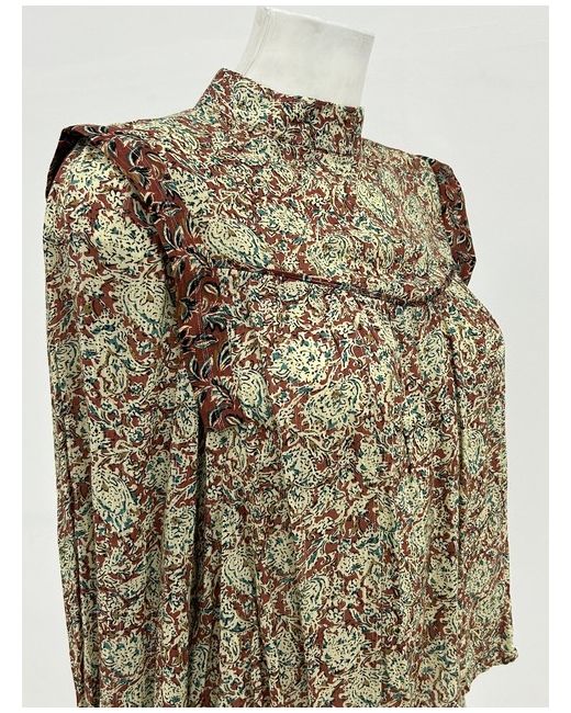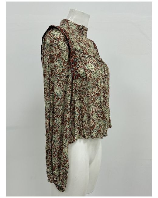 Women's Floral Ex Ladies Fall High Neck Puff Sleeve Cropped Blouse MED