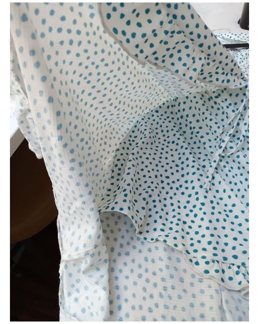 Cream with a teal spot dress - Pull & Bear Size Small. Wrap over bodice & faux wrap skirt.