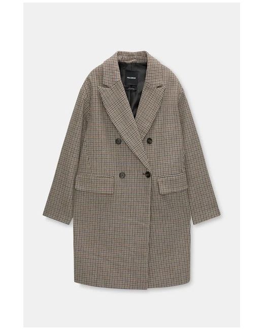 Oversize coat with double breasted button fastening and flap pockets. Made of felt texture fabric.
