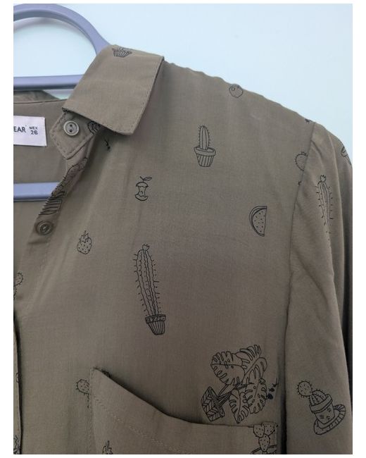 Embrace the effortless chic with the Pull & Bear Khaki Cactus Western Shirt, tailored to complement your casual wardrobe. This shirt features a distinctive cactus pattern that adds a touch of quirkiness to the classic green hue. Designed with a neat collared neckline and long sleeves, it's a versatile piece that transcends seasonal trends, perfect for autumnal outings, breezy spring days, and warm summer evenings. Crafted for a comfortable fit in a regular size S, this button-up shirt boasts a Western theme with stylish accents that include subtle button details. Whether you're heading to a laid-back meeting or enjoying a leisurely day out, this Pull & Bear garment, with its timeless basic style, ensures you'll look put-together with minimal effort.