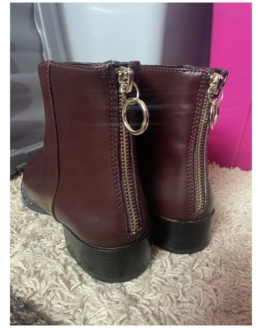 Pull&Bear deep red/burgundy ankle boots with back zip and stud detailing, new and unworn without tags size uk 4