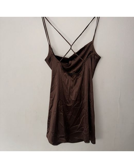 Add a touch of sophistication to your wardrobe with this stunning Pull & Bear backless dress. The dress is made of high-quality polyester fabric that is both comfortable and durable. The slip dress style is perfect for any occasion, whether it's a formal event or a casual outing. The dress comes in a size XS, which is perfect for women who prefer a regular fit. The brown colour adds a touch of elegance to the dress, making it perfect for any season. Whether you're dressing up or down, this Pull & Bear dress is sure to turn heads.
