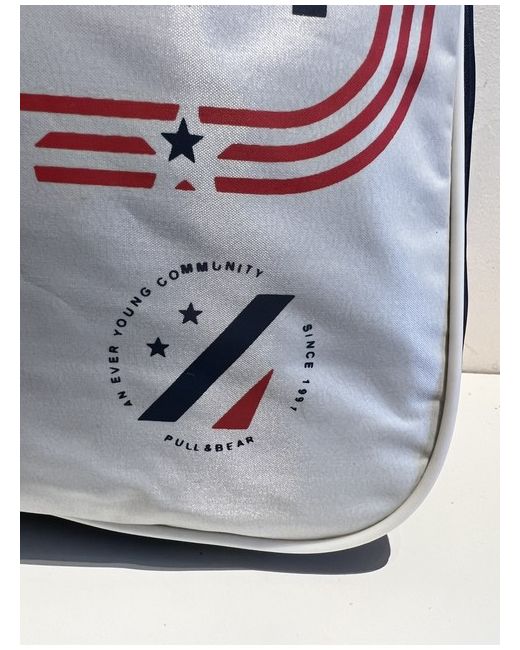 Pull & Bear Retro design flight bag The bag has a full width front pocket and a small interior pocket. The base has studded base. Dimensions: H 36 cm (14”) x W 26.5cm (10”) x D 10.5 cm (4”) The item will be sent by tracked post. The tracking number will be provided on dispatch. Happy Bidding and Thank You for Looking.