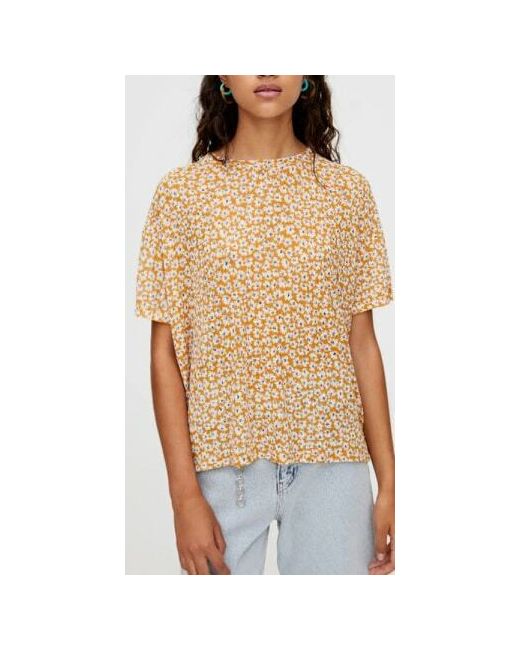 PULL & BEAR Textured Floral Print T-Shirt. Textured short sleeve T-shirt with a contrast floral print and round neckline. Model - 5.81ft / 177.