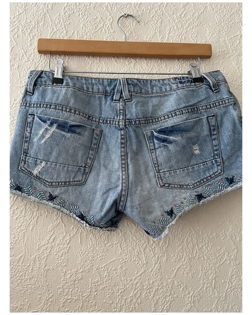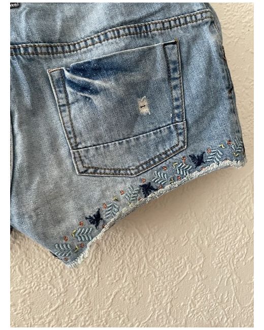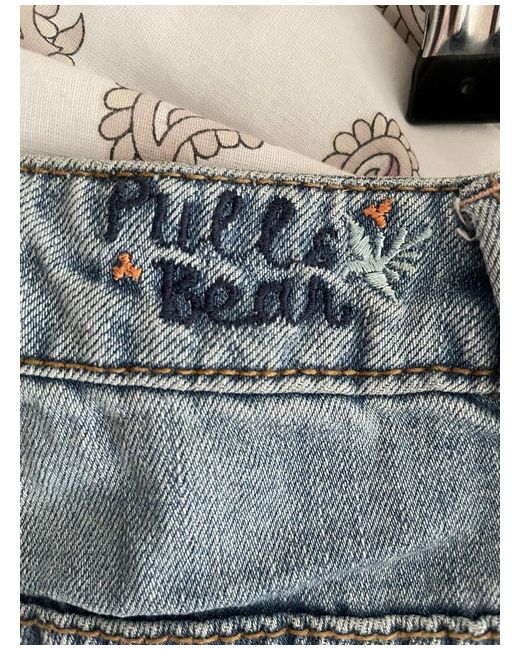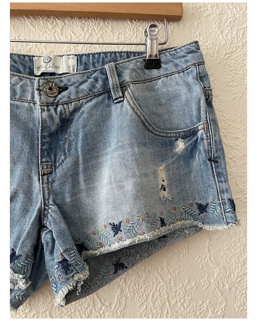 These Pull&Bear shorts in blue denim are a must-have for any fashion-forward woman. Featuring an embroidered design and distressed detailing, they add a playful touch to any outfit. Made from comfortable cotton fabric with a 38" waist size, they are perfect for summer days and nights. Style these shorts with a simple white top and some sneakers for a casual look, or dress them up with a flowy blouse and some heels for a night out. They are a versatile addition to any wardrobe and sure to get you noticed.