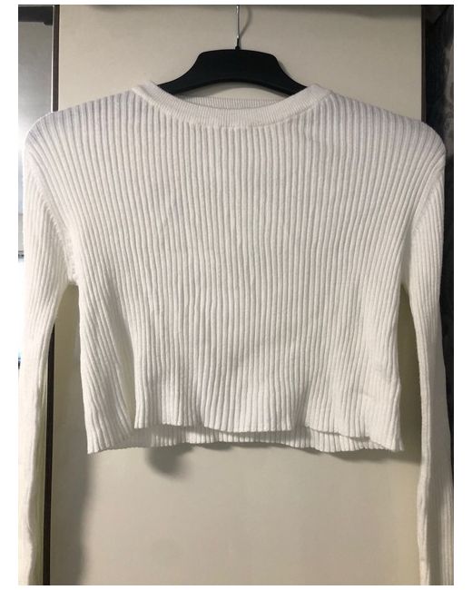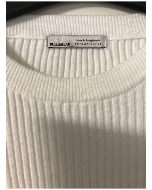 Pull&Bear White Ribbed Knitted Crop Jumper Top XS