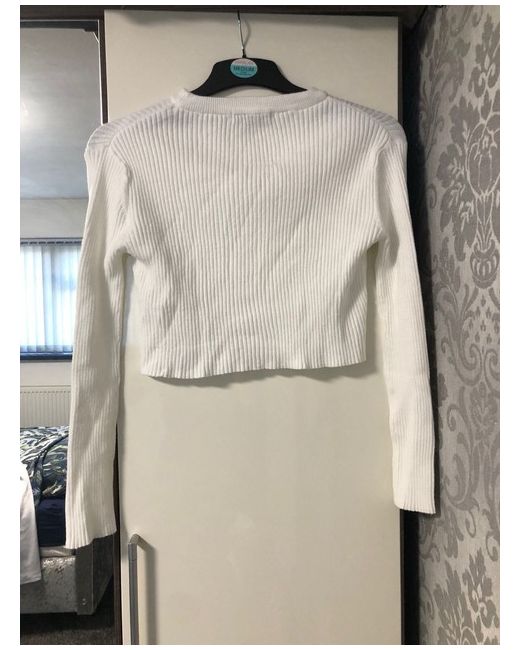 Women's White Ribbed Knitted Crop Jumper Top XS