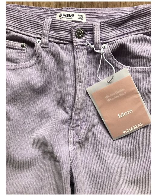New! Pull and Bear Mom Corduroy Trousers Size: UK 4 / XS 24 / 25 Lilac Total length: 84 cm Waist: 31 cm Excellent condition. Please note they have been shortened in length/ customised Any questions please ask.
