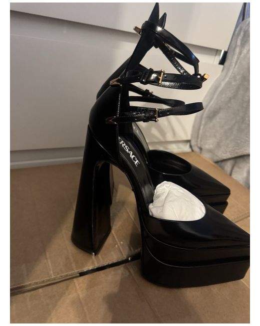 Crafted with high-quality leather in a versatile black, these shoes feature a triple strap design that not only adds an exotic touch but also ensures a secure and comfortable fit. The robust block heel provides stability, making them ideal for both formal occasions and night-outs.