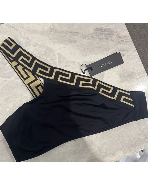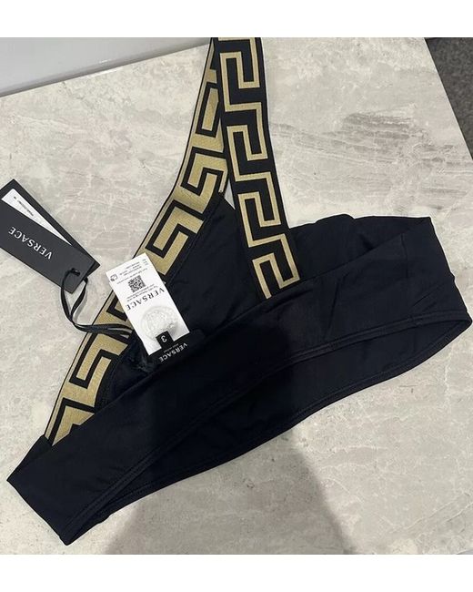 Elevate your swimwear collection with this stunning Versace Icon Greca One Shoulder Bikini in size XS. This authentic piece features the brand's iconic Greca motif and is made with high-quality materials to ensure long-lasting wear. The bikini top boasts a single shoulder strap for a unique and fashion-forward look, while the black colour adds an air of sophistication. Perfect for any stylish woman looking to add a touch of luxury to her beach or poolside attire, this Versace bikini is a must-have. Whether you're lounging on a tropical beach or taking a dip in the local pool, you'll feel confident and chic in this designer piece. Don't miss out on the opportunity to own this genuine item at a fraction of the retail price.