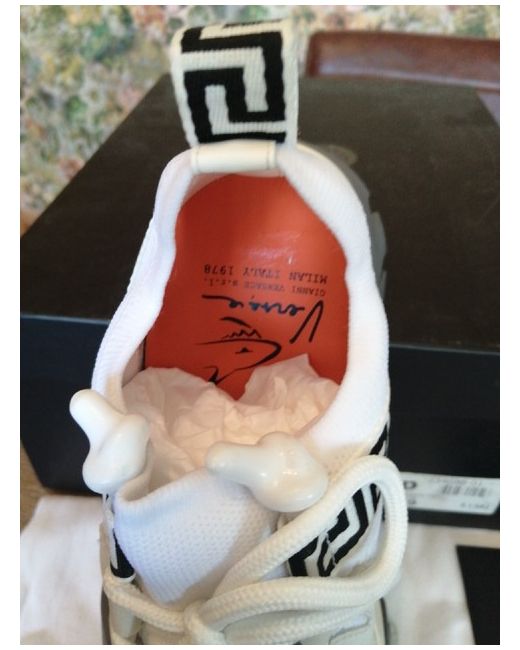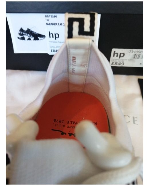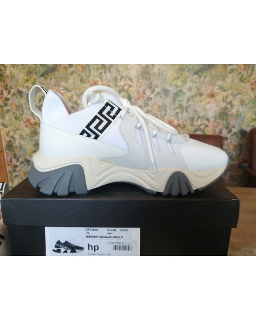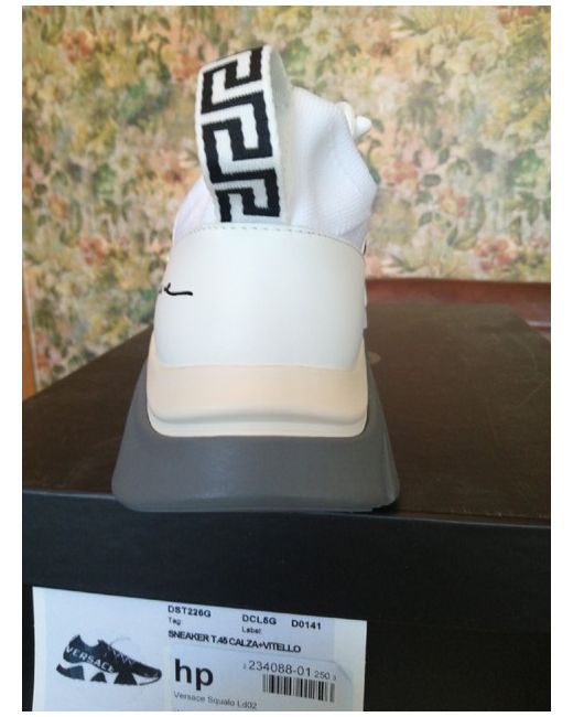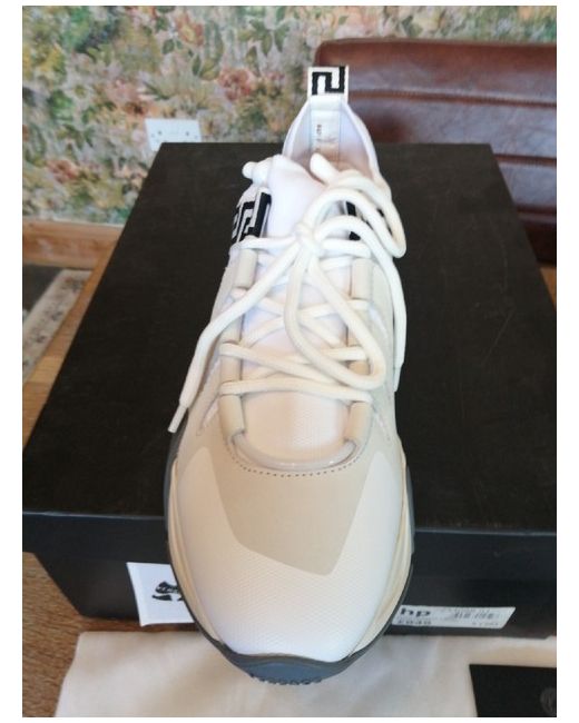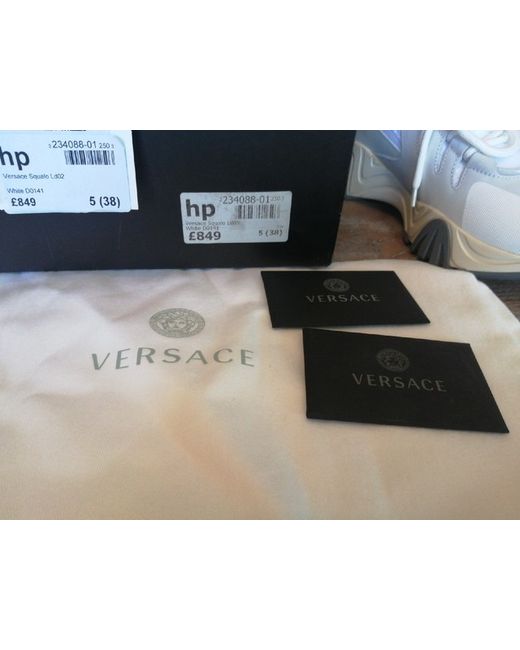 Versace Squalo Women's Trainers White /Grey Size 5. New in box with a dust bag. Fantastic Versace trainers in white, grey and cream constructed from a leather/ mesh fabric mix. Made in Italy. There are 3 areas of glue overspill on the sole of the left trainer (please see pics) but not too bad. Thanks for looking