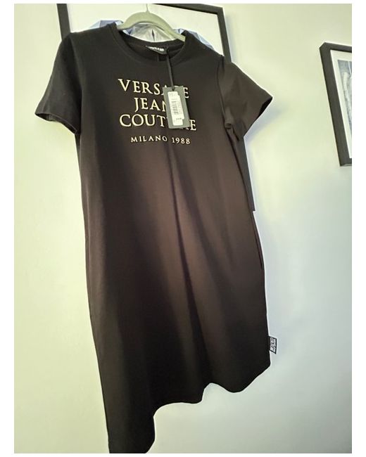 This stunning black jumper dress from Versace is a must-have for any fashion-conscious woman. Made from 100% cotton, it offers comfort and style, making it perfect for casual occasions during spring and summer.Featuring short sleeves, a pullover closure, and knee-length design, this dress flatters the figure while also offering practicality. The black colour adds to the elegant look, making it suitable for a variety of events. Whether you're going out for a meal or meeting friends for coffee, this Versace dress will make you feel confident and chic.