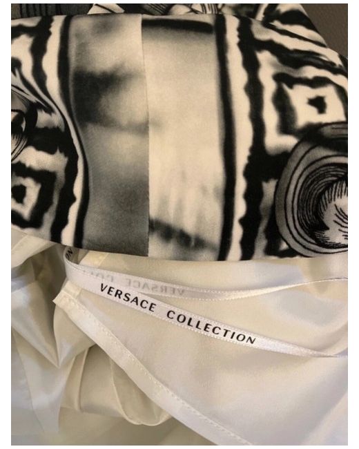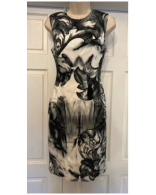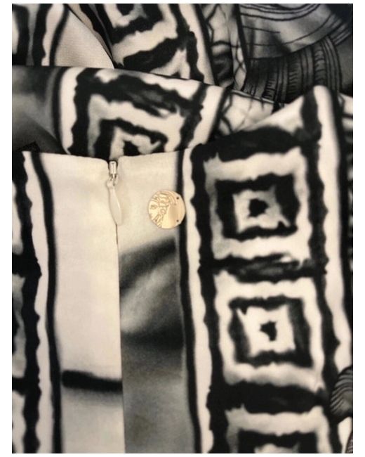 Stunning Versace Abito Donna Tessuto dress. Pencil dress, black, white, and grey abstract pattern. Straight, fitted, sleeveless, fully lined. Zip closure to back. Metal Versace logo badge/tag to back New with tags Retail price £495 Size 12 UK Pit to pit: 43cm Waist: 34cm Length: 100cm...