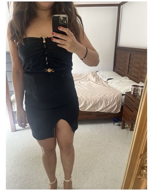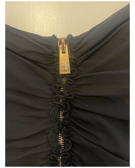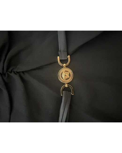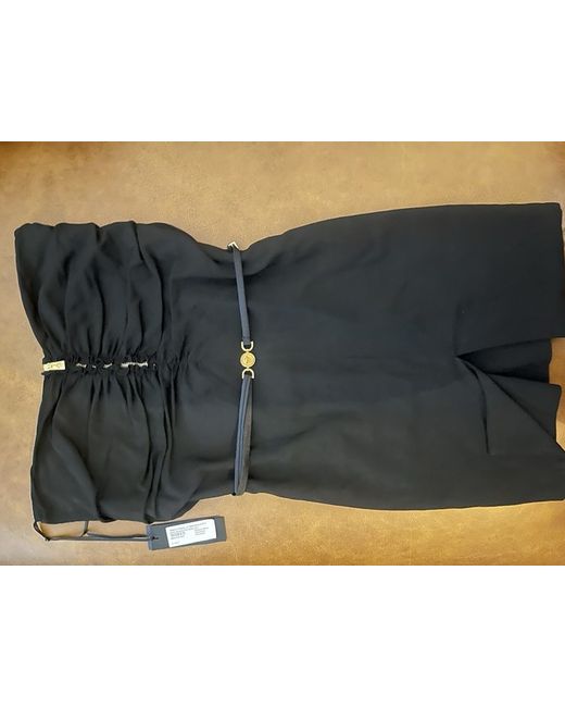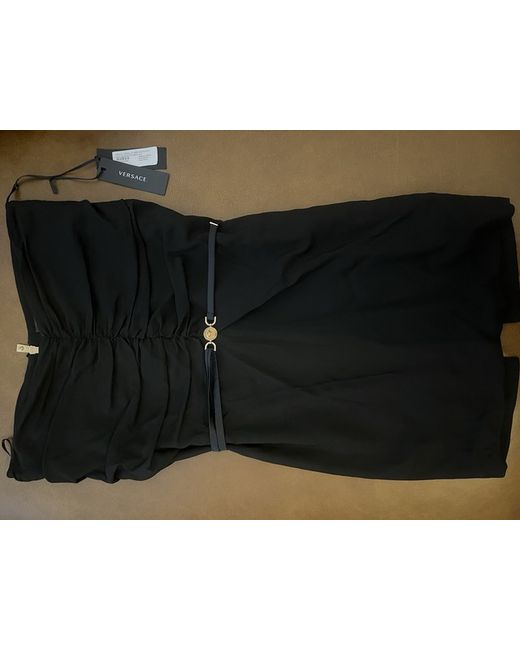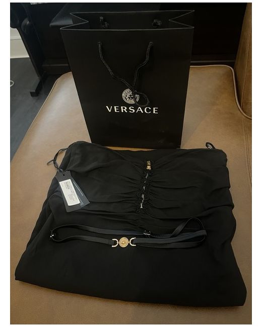 Brand new and unworn genuine black and gold Versace knee high dress worth £1,070! Bought from Bicester village for half price, receipt included, label still attached, and cellophane sticker still attached to gold zip Beautiful soft georgette / chiffon style fabric Iconic gold Versace motif (that unclips) on black belt / strap Versatile and can be worn two ways: 1) Front with belt strap around neck 2) Back to front, with belt strap around waist Size UK 10 / Eur Size 42 (S/M) Comes with Versace bag