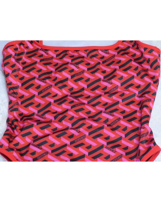 This Versace swimsuit is a must-have for any fashion-forward woman looking to make a statement at the beach or pool. With its reversible design, you can switch up your look effortlessly. The stunning red colour is sure to turn heads, and the brand's reputation for quality ensures that you'll be comfortable and stylish all day long. The suit is labelled as a size L and is designed for regular sized women. The one-piece style is both flattering and practical, making it the perfect addition to your swimwear collection. Whether you're lounging by the pool or getting active in the water, this Versace swimsuit has got you covered.