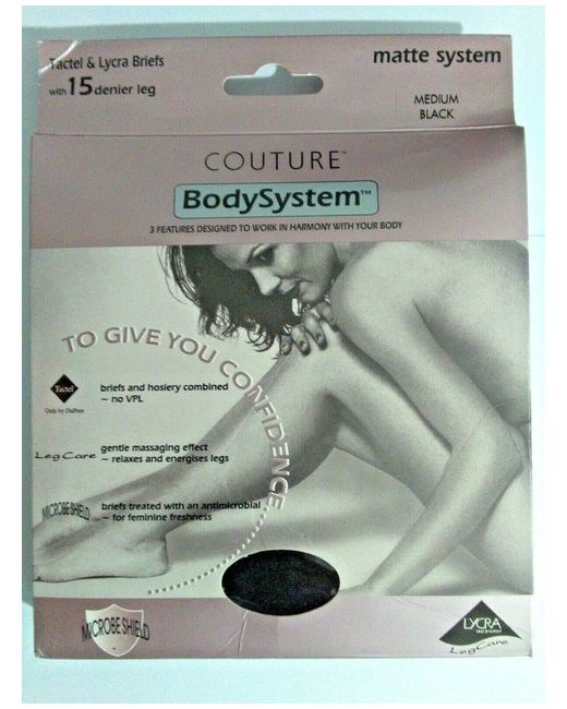 COUTURE BodySystem Lovely Quality Black Tights with Combined Brief. Briefs & Hosiery Combination giving No VPL. 15 Denier Black Tights With Shaped Brief.