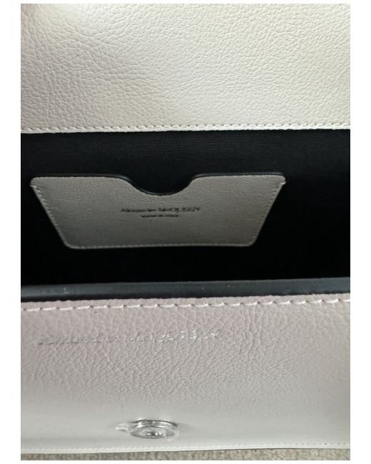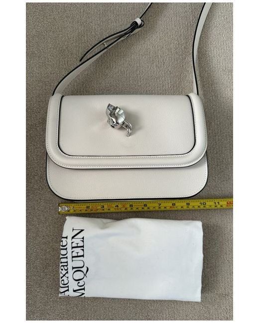 Alexander McQueen off-white leather shoulder bag with snap closure and silver-tone skull, one compartment. Adjustable shoulder strap. One small inner pocket. Composition: 100% leather. New Dispatched by Royal Mail 2nd class.