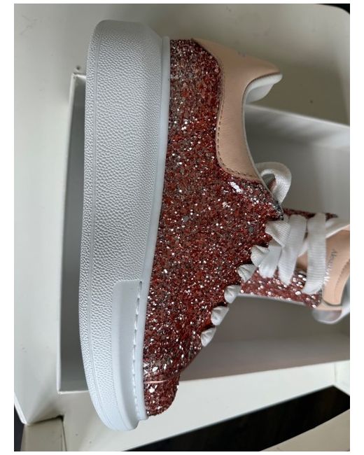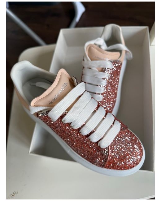Elevate your footwear collection with these sleek Alexander McQueen trainers, a perfect blend of luxury and contemporary style. Cast in an elegant rose gold hue, these sneakers cater to both fashion-forward sensibilities and comfort. Designed for women who appreciate a marriage of high street fashion and sporty chic, these trainers are a versatile addition to any ensemble.The trainers come in a UK size 13.5, with the equivalent US size, ensuring a comfortable and snug fit. The iconic Alexander McQueen branding adds a touch of prestige to these casual yet sophisticated shoes. Whether you're dressing up for an outing or aiming for a more laid-back look, these sneakers are sure to complement your wardrobe with their understated yet striking design.