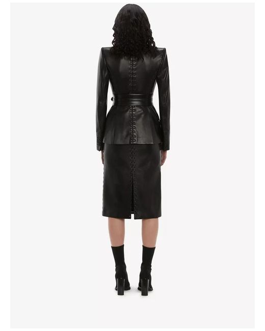 Size IT38 / UK6 / US2 / FR34 / XS. ALEXANDER MCQUEEN - Leather Blazer. Tailoring is an Alexander McQueen speciality that creative director Sarah Burton takes to couture proportions with this black leather jacket.