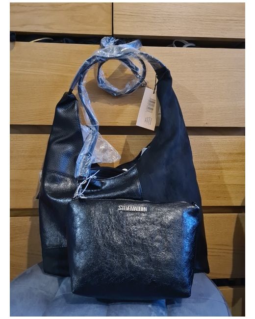 Steve Madden Shoulder Bag Black Leather Suede Patchwork 90s 00s Y2K Retro Hobo shoulder bag with pouch bag.