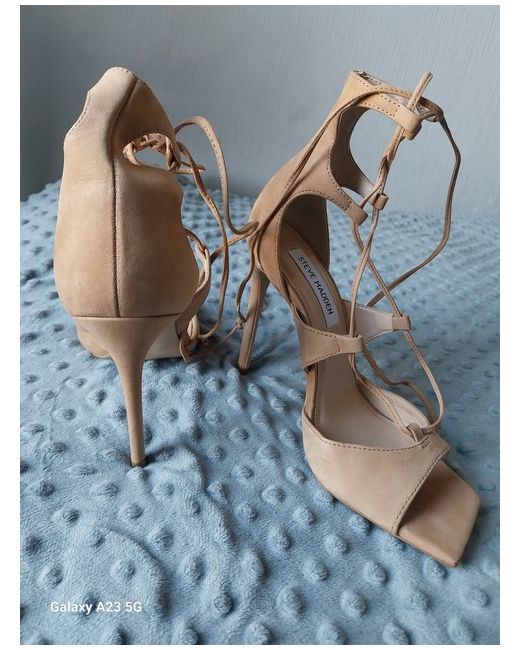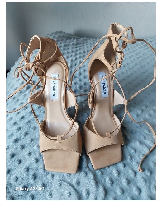 These Steve Madden heels in UK size 5 feature a cone heel style on a platform design. With a brown colour and made from 100% cotton upper material, these shoes are both stylish and comfortable. They are a versatile option for women looking to add a touch of sophistication to their outfit. The heels are in new condition without a box, making them a great addition to any wardrobe for those who appreciate quality footwear.