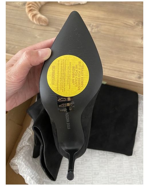 Black Size 4 New unworn Purchased from Selfridges Elevate your style with these chic Steve Madden boots in size 4. Designed for women, these boots are the perfect addition to any wardrobe. Crafted with high-quality materials, these boots are built to last and will provide comfort and support throughout the day. With a focus on both fashion and function, these boots are perfect for any occasion. The sleek design and sturdy construction make them a great choice for those who want to look and feel great. Whether you're dressing up for a night out or running errands, these boots are sure to become a staple in your wardrobe.