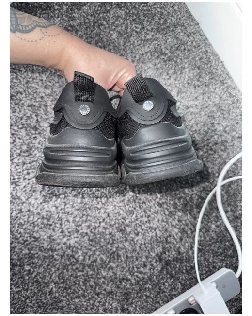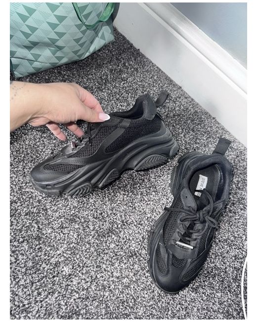 These are new Steve Madden black trainer sneakers for women in UK size 6.