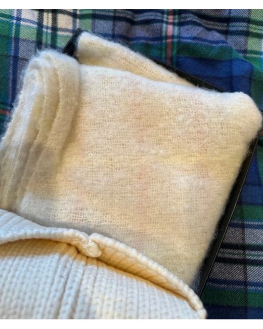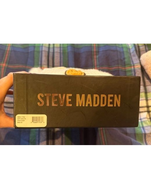 Creamy white hat with smiley face and small Steve Madden tag. Creamy white scarf with a hint of pink. Brand new - unwanted gift.
