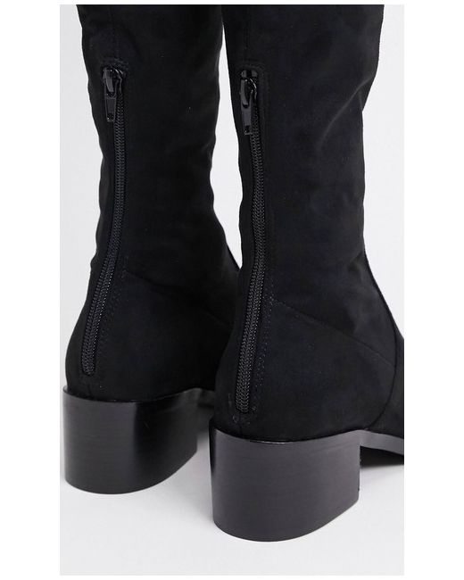 Steve Madden Black Knee High Boots. Condition is "New with box". Dispatched with Royal Mail 2nd Class. Georgette black Steve Madden knee high boots Color: Black Material upper: Microsuede Size recommendation: We would recommend you to order your own size. Heel height: 4 cm Shaft height: 54 cm Shaft width: 31 cm Closure type: Zipper High-leg design Zip-back fastening Slim sole Low heel