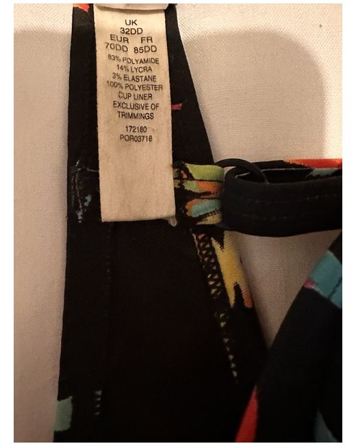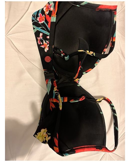 new without tags women’s Lepel bikini top in size 32DD, designed with underwired support. The top features a multicoloured floral pattern