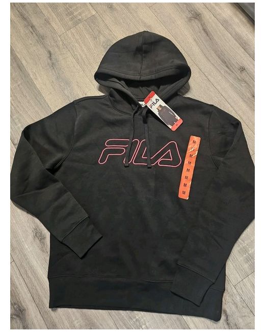 This Fila sweatshirt is a new, black pullover designed for women in size M. It falls under the activewear category, making it a stylish and practical addition to any woman's wardrobe. The Fila brand is well-known for its quality and sporty style, making this sweatshirt a fashionable choice for those looking for comfort and functionality during workouts or casual wear.
