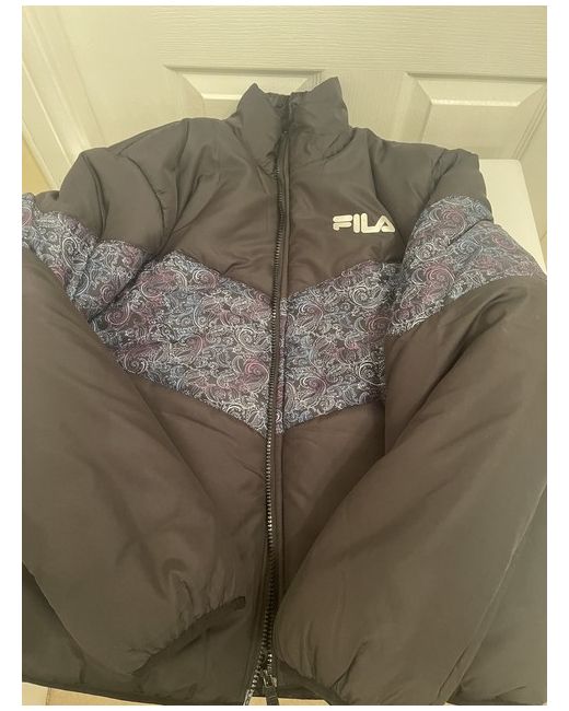 Introducing a stylish and comfortable FILA puffer jacket with a unique paisley pattern trim. This jacket features a full zip closure, collared neckline, and long sleeves, making it perfect for any casual, workwear, or travel occasion.