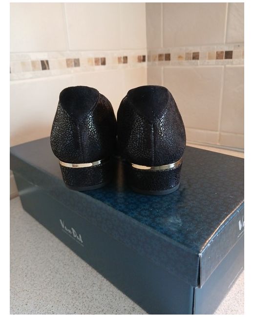 These Van Dal black low heel shoes size 5 are a versatile addition to any woman's wardrobe. With a round toe shape, slip-on closure, and comfortable leather lining and insole, they are perfect for casual, formal, or business occasions. The gold edged heel adds a touch of elegance, while the low 2.5-4.9 cm block heel provides stability and comfort. Made in the United Kingdom with high-quality leather and synthetic outsole, these court-style shoes offer arch support and are ideal for autumn, winter, and spring.