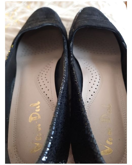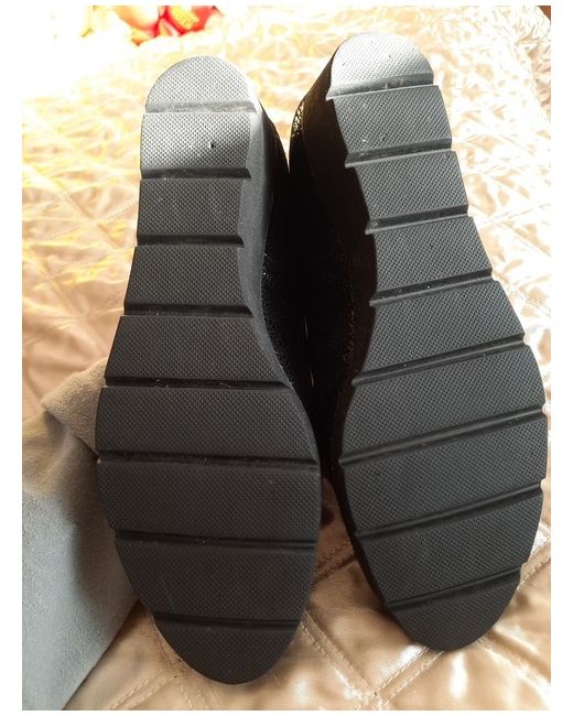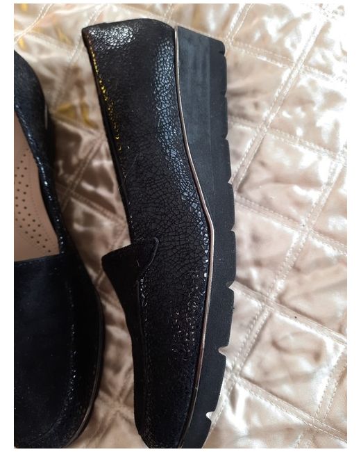 Black Suede and patent crackle pattern, see 2nd photo, wedge heel loafers brand new size 5. With arch support and cushion under ball of foot. Slightly too tight for me. Lovely quality shoe.