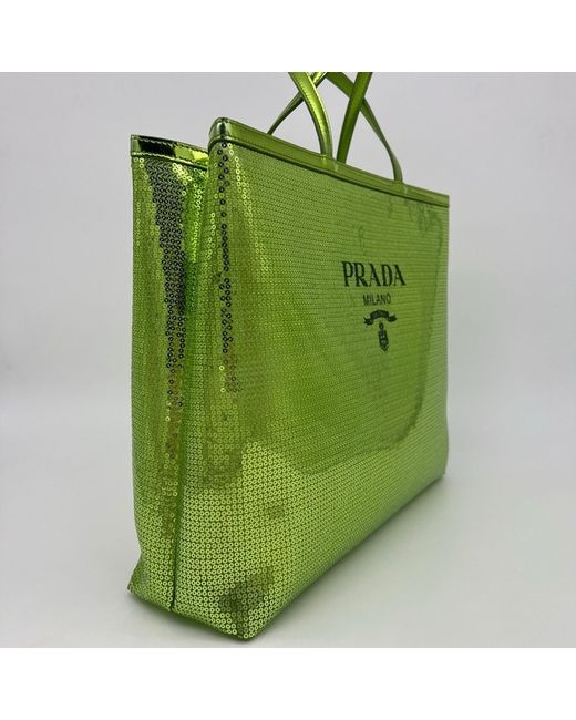 Women's Green Mesh Sequin Logo Large Tote Bag with Pouch