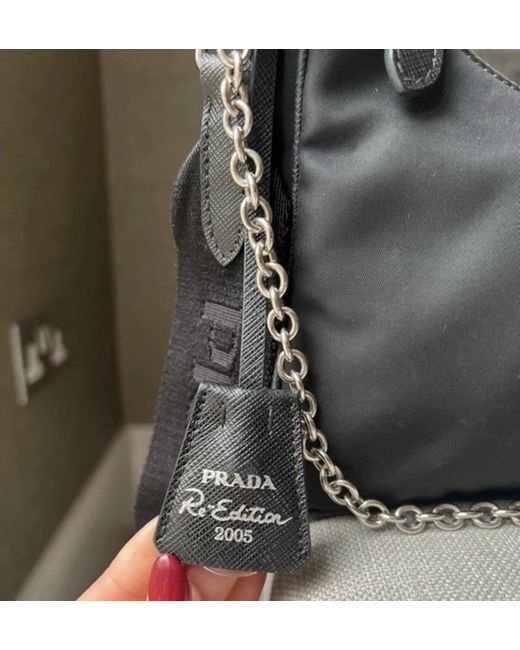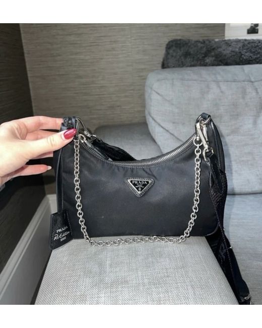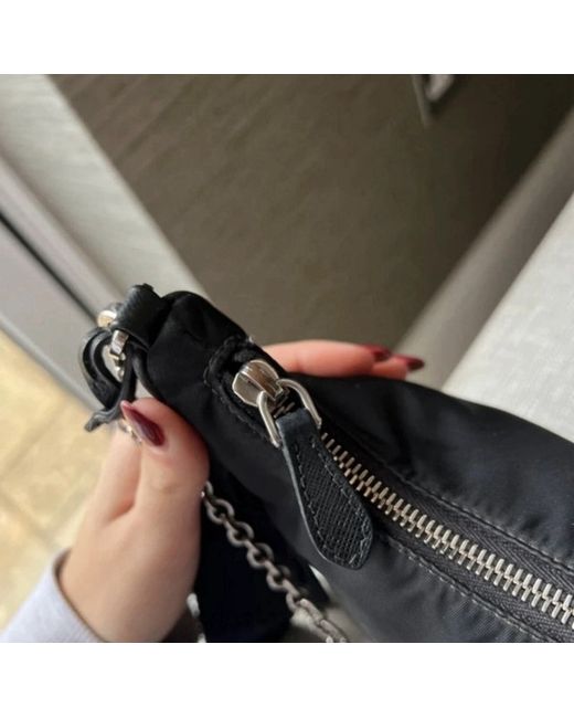 Black Prada re-edition 2005 re-nylon bag. This bag has been used but it is still in good condition other than a small rip in the lining which could be easily fixed.