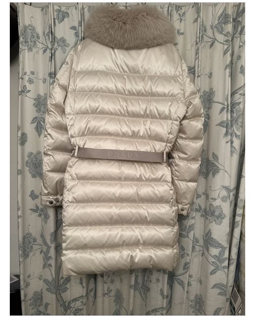 Elevate your winter wardrobe with the Prada Winter Coat, a testament to luxury and functionality. Crafted from high-quality polyamide, this puffer jacket comes in an elegant ivory shade that complements any outfit. Its size 48 silhouette is designed to fit comfortably, featuring a regular size type that suits a variety of body shapes. The coat is filled with a cosy blend of goose down and feathers, ensuring warmth and comfort during the colder months. Practicality is not overlooked, as it boasts a full zip closure, a removable hood, inner pocket, and a belted feature to accentuate the waist. This coat is versatile for any occasion without compromising on style.