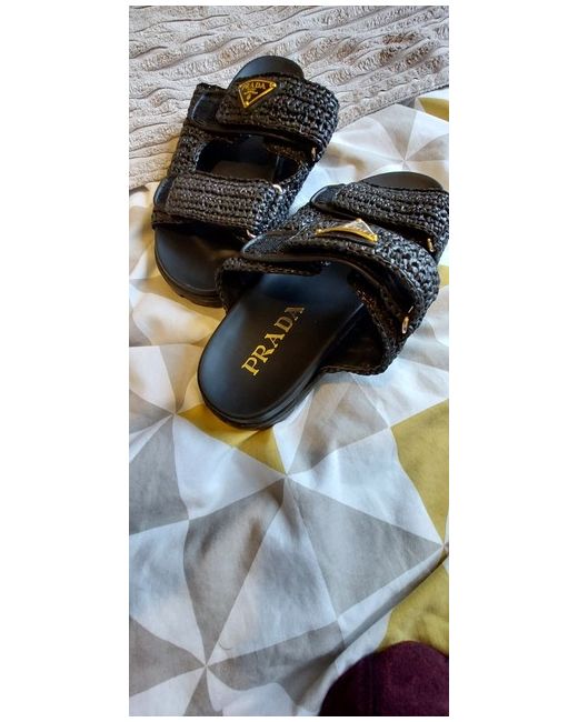 Elevate your shoe collection with these stylish Women's Black Logo Raffia-Effect Sandals from PRADA. The strappy design and leather upper material make them perfect for any occasion. The sandals come in size 6 for both UK and AU, making them a comfortable fit for any woman. The black colour adds a touch of sophistication to any outfit, making them a versatile addition to your wardrobe. Perfect for women who want to make a statement with their footwear, these sandals are a must-have for any fashion-forward individual.