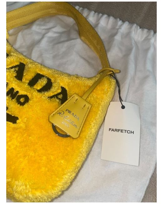 PRADA YELLOW DESIGNER BAG. Woven nylon tape handle. Length: 6cm. Re-Nylon logo-print lining.