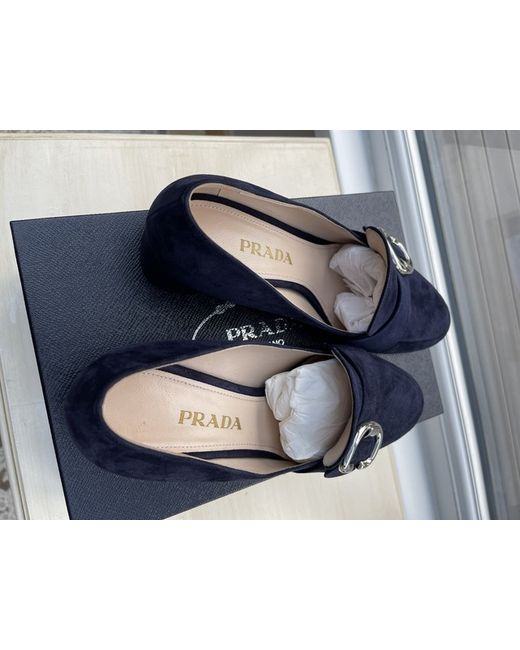 prada Navy Blue Heel,. CALZATURE DONNAL 1D9601 Blue Camoscio 1d96108 F0008 C095 2018 00222 H