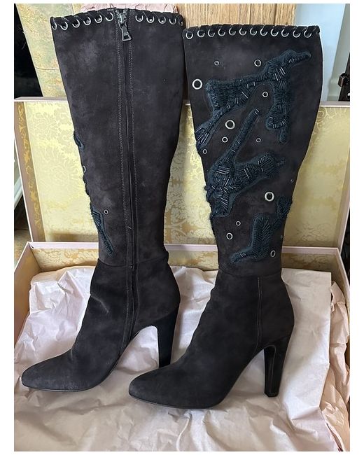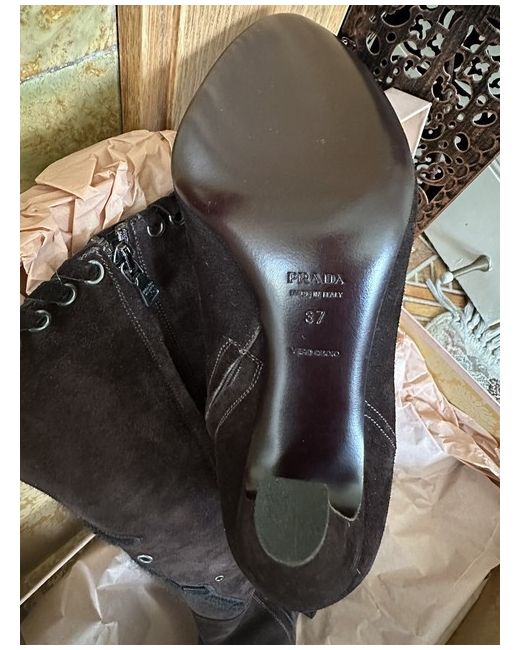 Absolutely gorgeous, exceptional quality and style pair of brand new Prada suede boots. One of a kind and classic. It’s dark chocolate colour with black and metal ornaments.