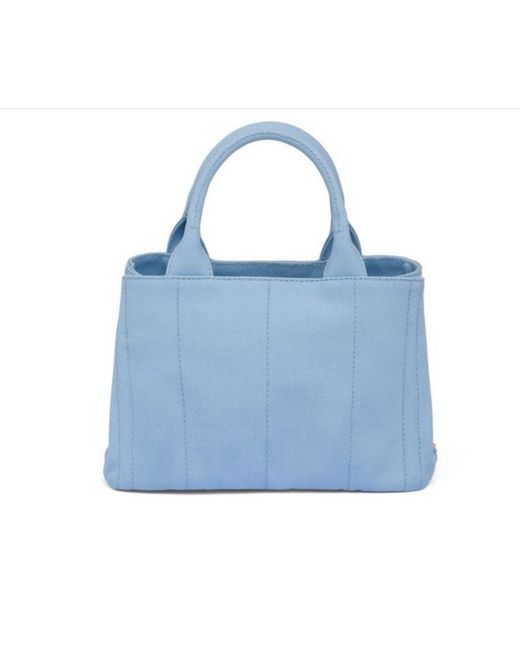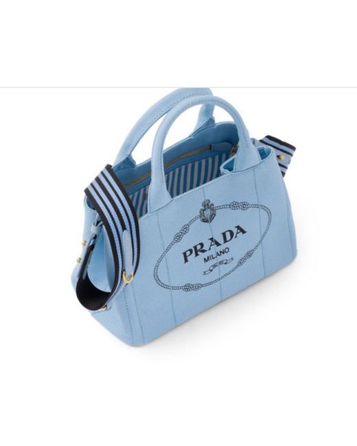 Hemp fabric bag with silk-screened Prada logo and classic enamel triangle logo on the sides. Inside, three pockets and a light hemp fabric lining. - Product code: 1BG439_ZKI_F0964_V_ROO - Canvas handles - Detachable 105 cm woven shoulder strap - Metal hardware - Printed logo on the front and on enameled metal triangle - Snap closure on the sides - Canvas interior with three pockets, one with a zipper - Small feet on the bottom - Height: 20cm - Length: 15cm - Width: 28cm