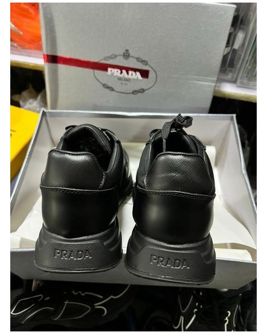 Luxury Prada sneakers in black – a blend of style and comfort. Made with high-quality materials, these sneakers showcase Prada’s iconic design and attention to detail. Size [7.5], gently worn and in great condition.