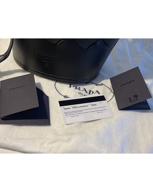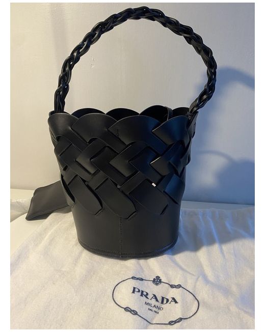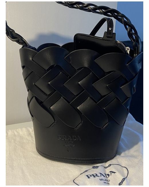 This Prada handbag is a must-have for any fashion-forward woman. Crafted from high-quality leather in a sleek black shade, it exudes sophistication and style. The drawstring bag features a unique bucket design, making it perfect for everyday use. The hardware is also black in colour, adding to the overall aesthetic. The lining is made from soft leather, ensuring the bag is comfortable to carry. With a spacious exterior and a comfortable strap, this Prada handbag is perfect for any occasion. Add it to your collection today and elevate your fashion game.